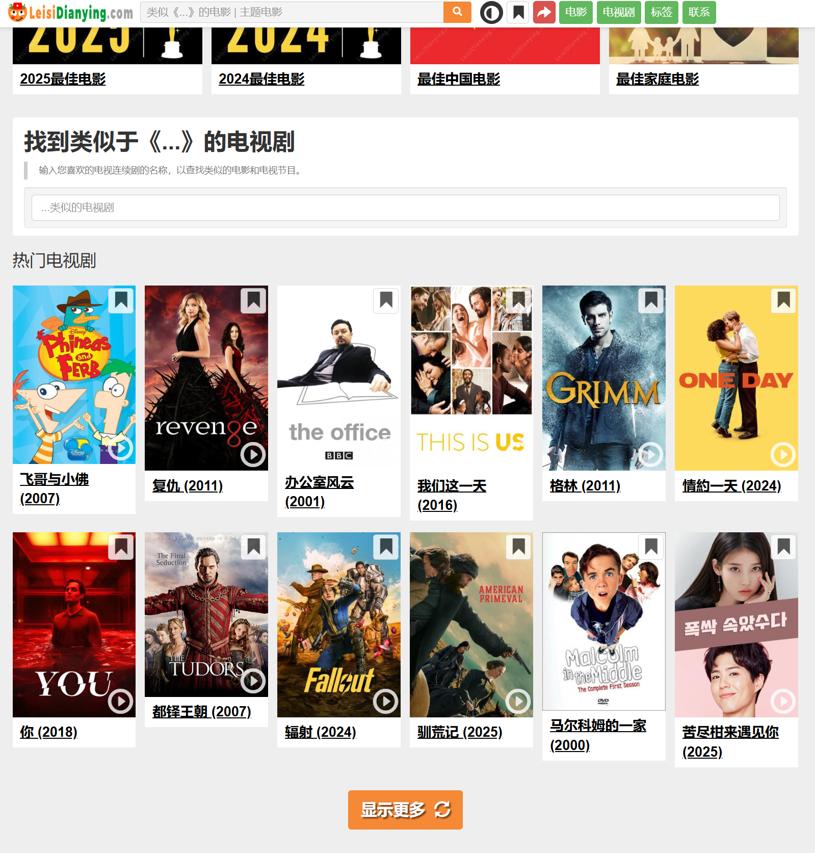 一个根据你输入的电影来推荐相似的其他电影的网站 https://leisidianying.com/
